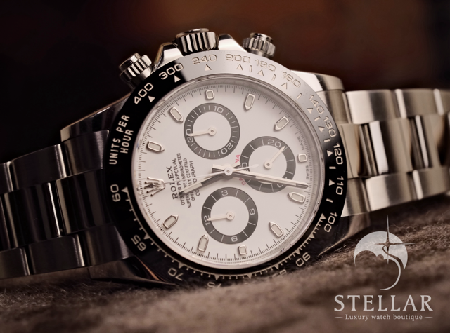 白い文字盤に黒いインダイヤル、パンダのクラシック。