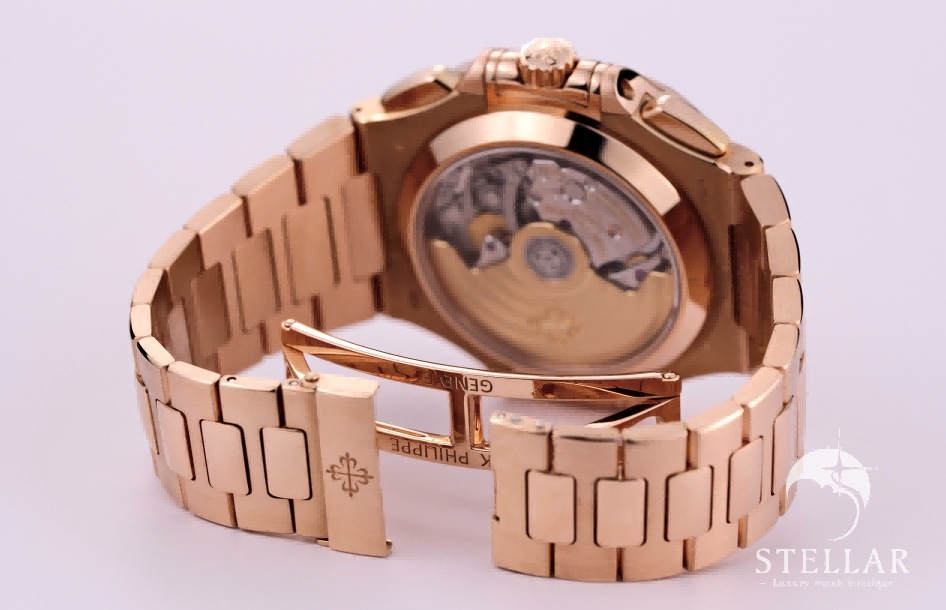 融合Nautilus系列的運動張力與玫瑰金的華麗光采,此枚高端計時碼錶展現出無與倫比的尊貴氣度。
