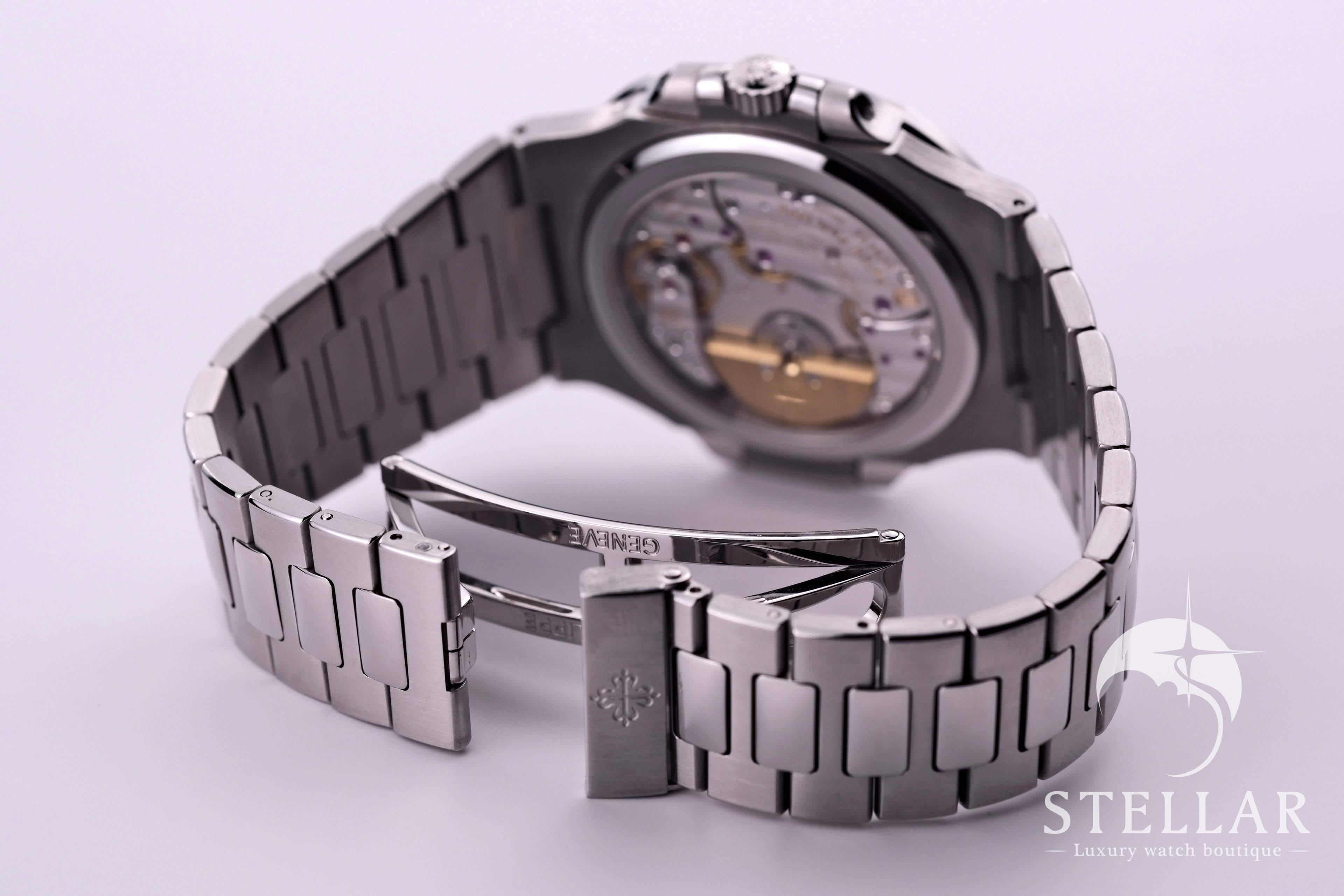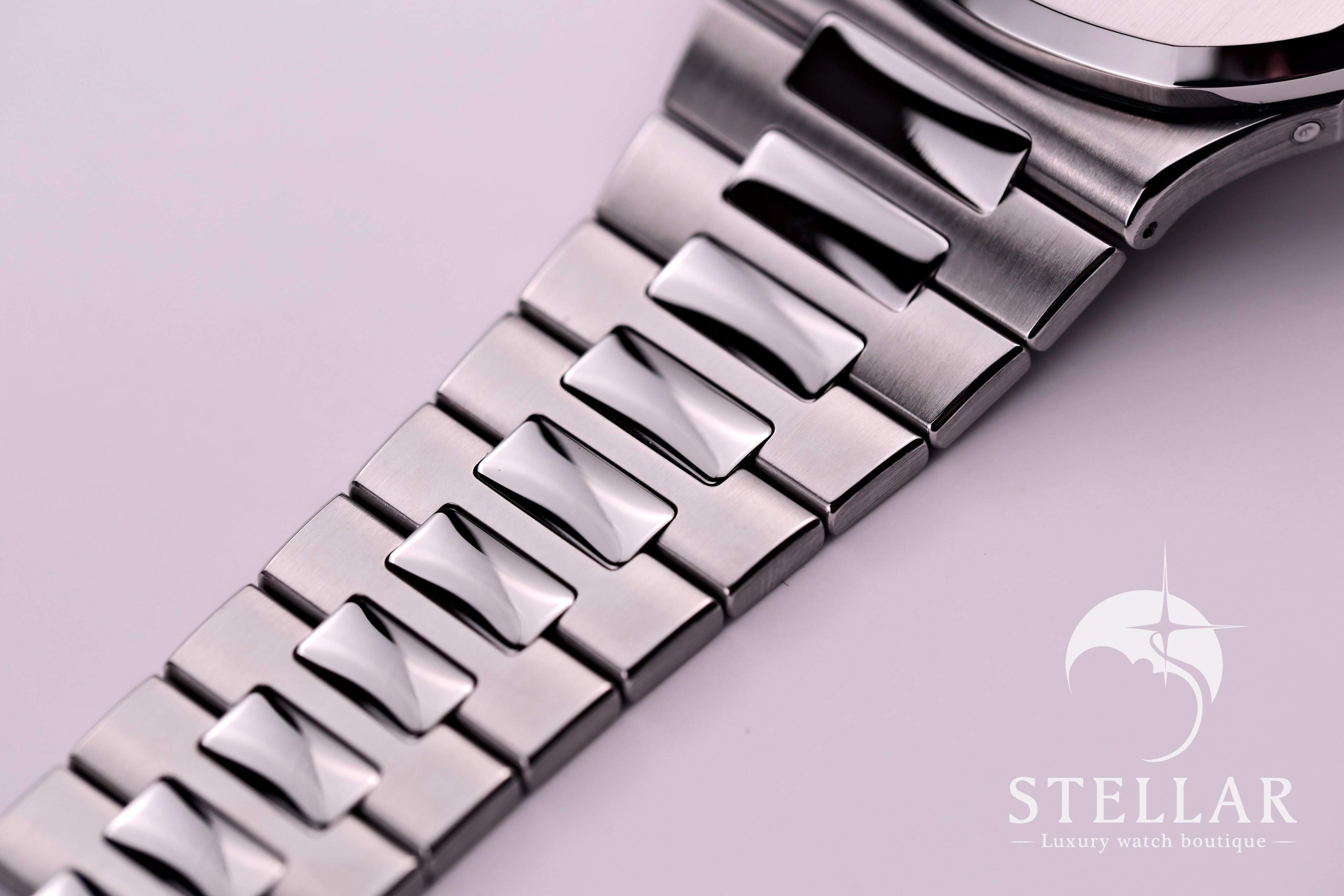 優美な曲線を描くオクタゴンベゼルと、手首に自然に馴染む一体型ブレスレットが特徴。スポーティーでありながらエレガントな佇まいは、ノーチラスならではの魅力を放ちます。