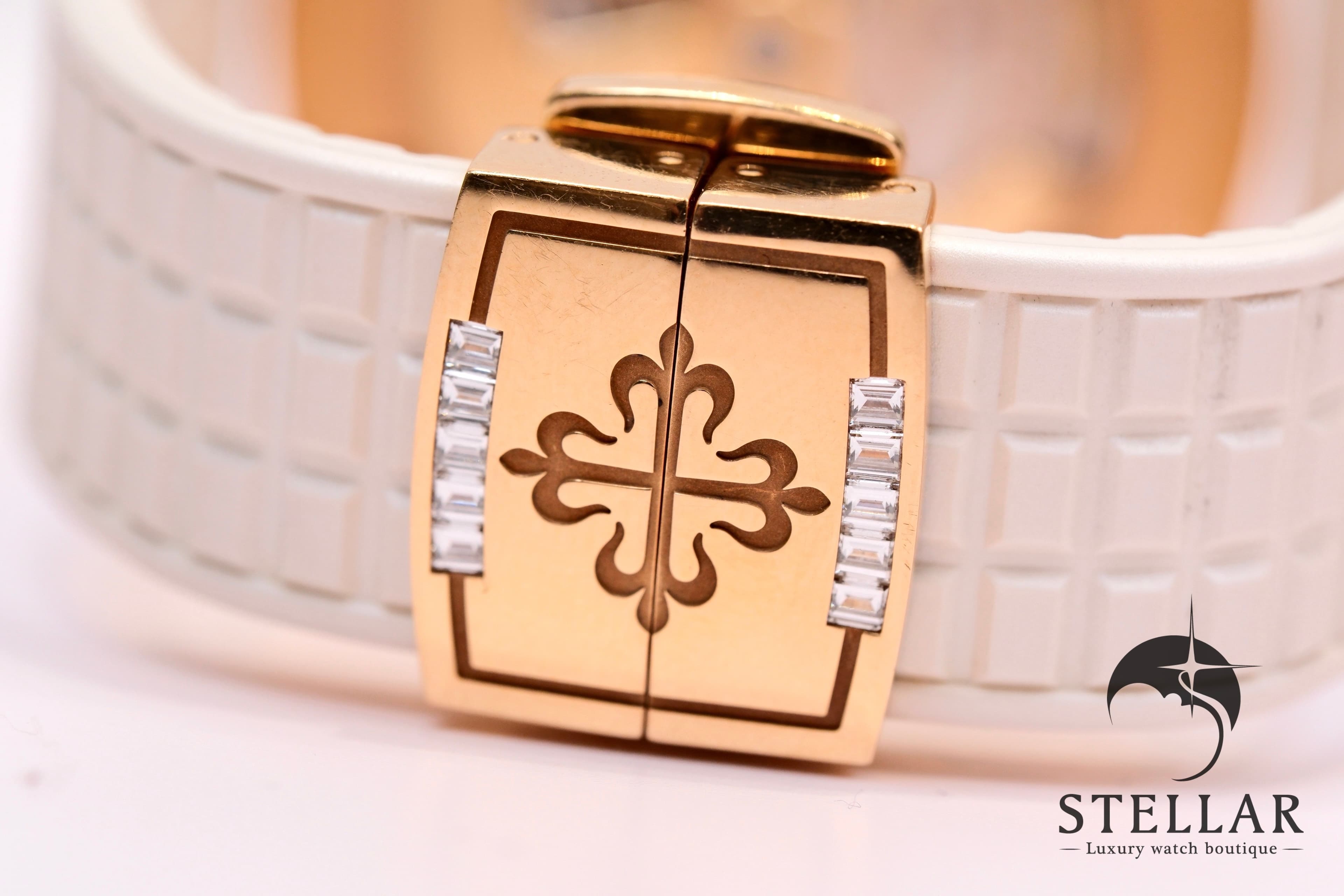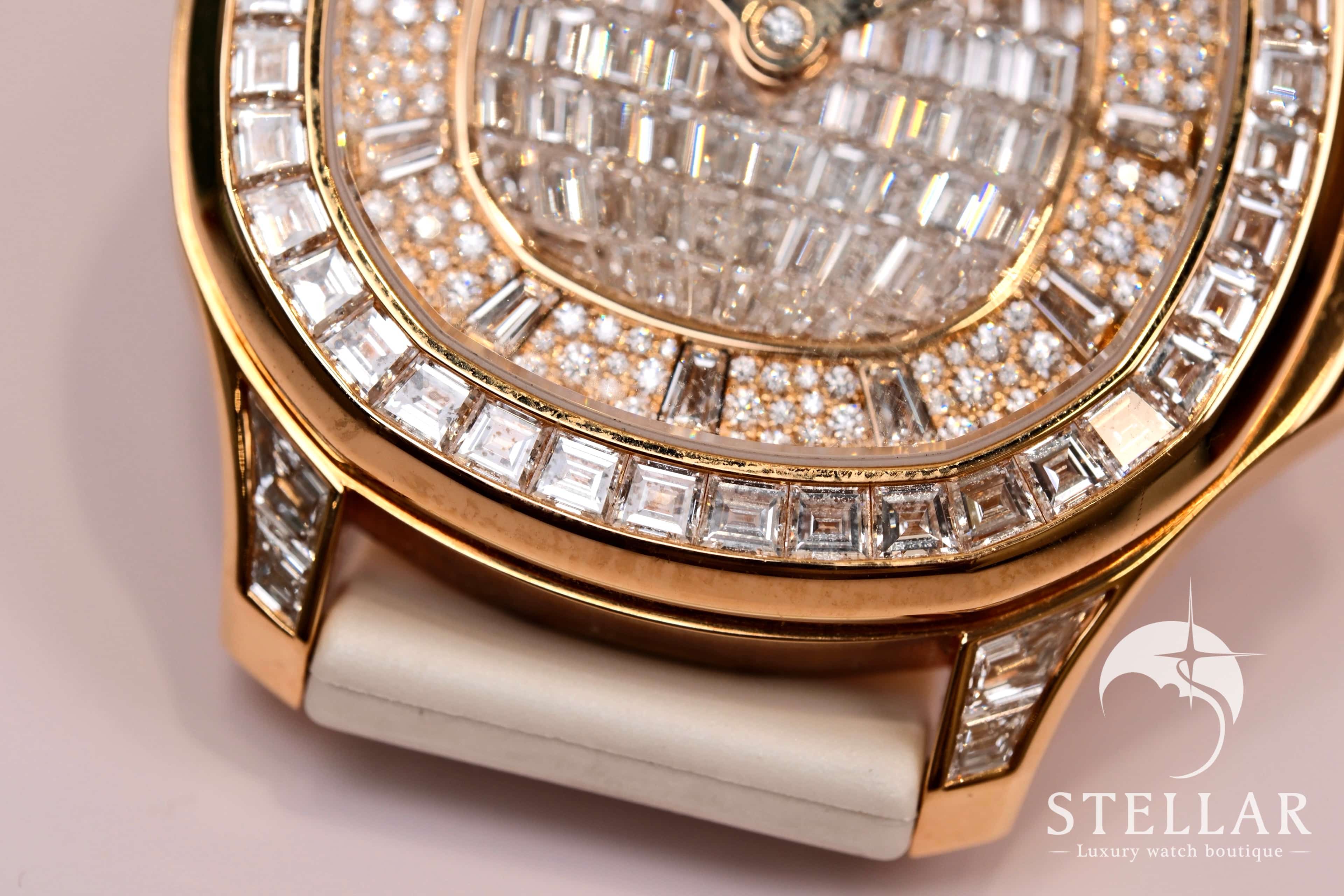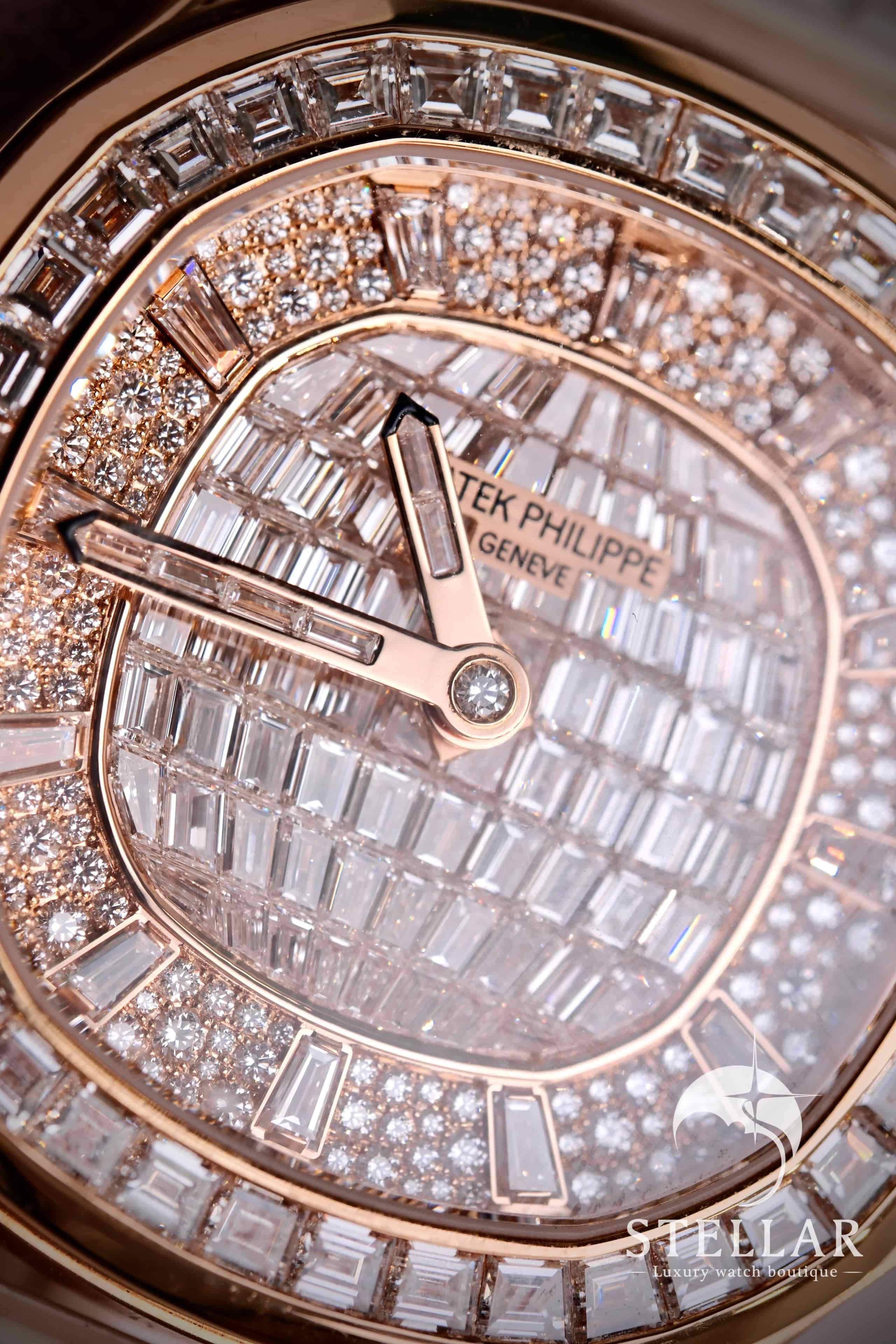 5062/450R-001 は、パテック フィリップが誇る高度なジュエリー技術と、時計製造における厳格な美学を融合させたレディース・コンプリケーションモデルです。