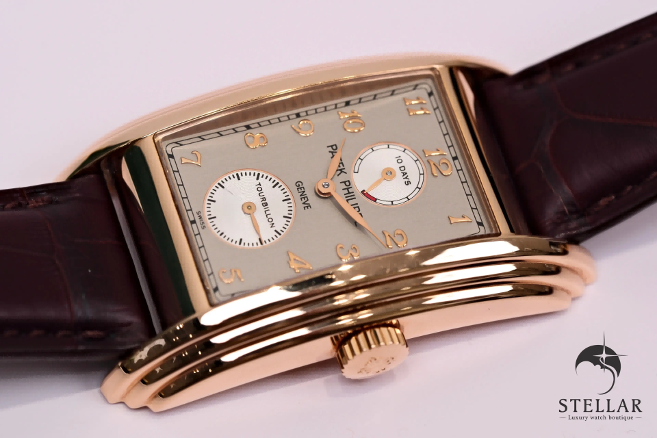 Patek Philippe 5101R-001 は、トノー型ケースにトゥールビヨンとパワーリザーブ表示を備えた、ゴンドーロ・コレクションのハイコンプリケーションモデルです。