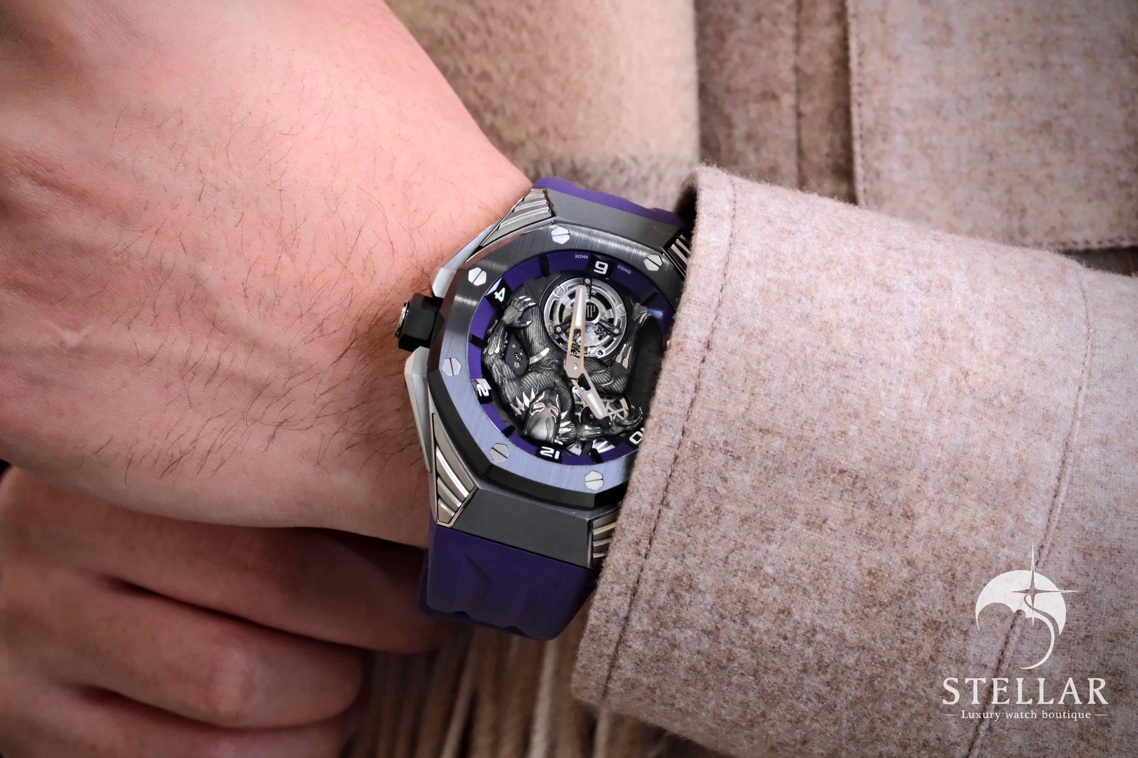 Audemars Piguet がマーベルとコラボレーションして生み出した「Royal Oak Concept Black Panther」は、世界限定250本,先進的な時計製造とポップカルチャーを融合させた革新的モデルです。